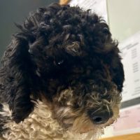 Apollo is a male Panda-Terrier (extra soft edition). He weighs around 55 pounds and is approximately four years old.