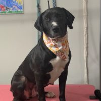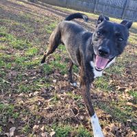 Maggie is a puppy in a big dog's body. This little gal is a one year old Lab Mix.