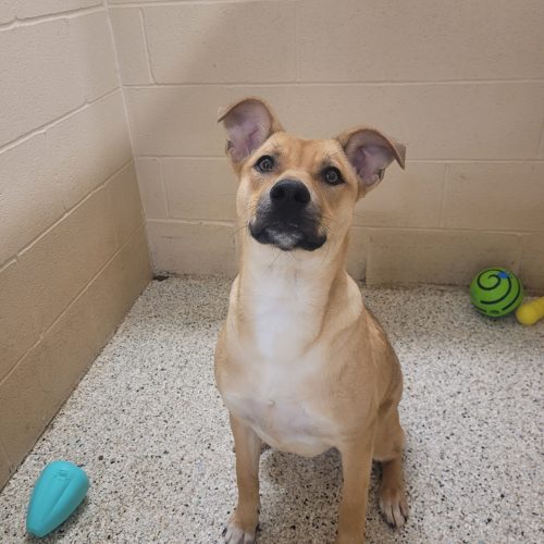 This little nugget is a female mix of Husky and Labrador Retriever. Callie is only eight months old and weighs around 40 pounds. She is a smart gal who needs an active human that will engage with her in a variety of activities. She will make a great and dedicated companion!