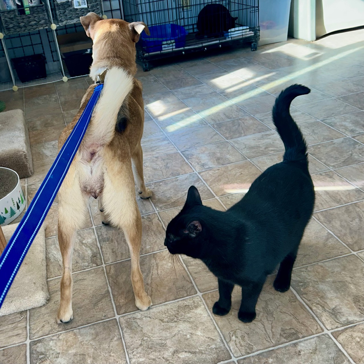 Sweet little Dixie has an infectious energy. She is two years old and weighs 34 pounds. We cannot say for sure that she is house trained, but she sure keeps her kennel clean! Do you need some positive and playful energy in your life? This gal never meets a stranger and is ready to meet you!