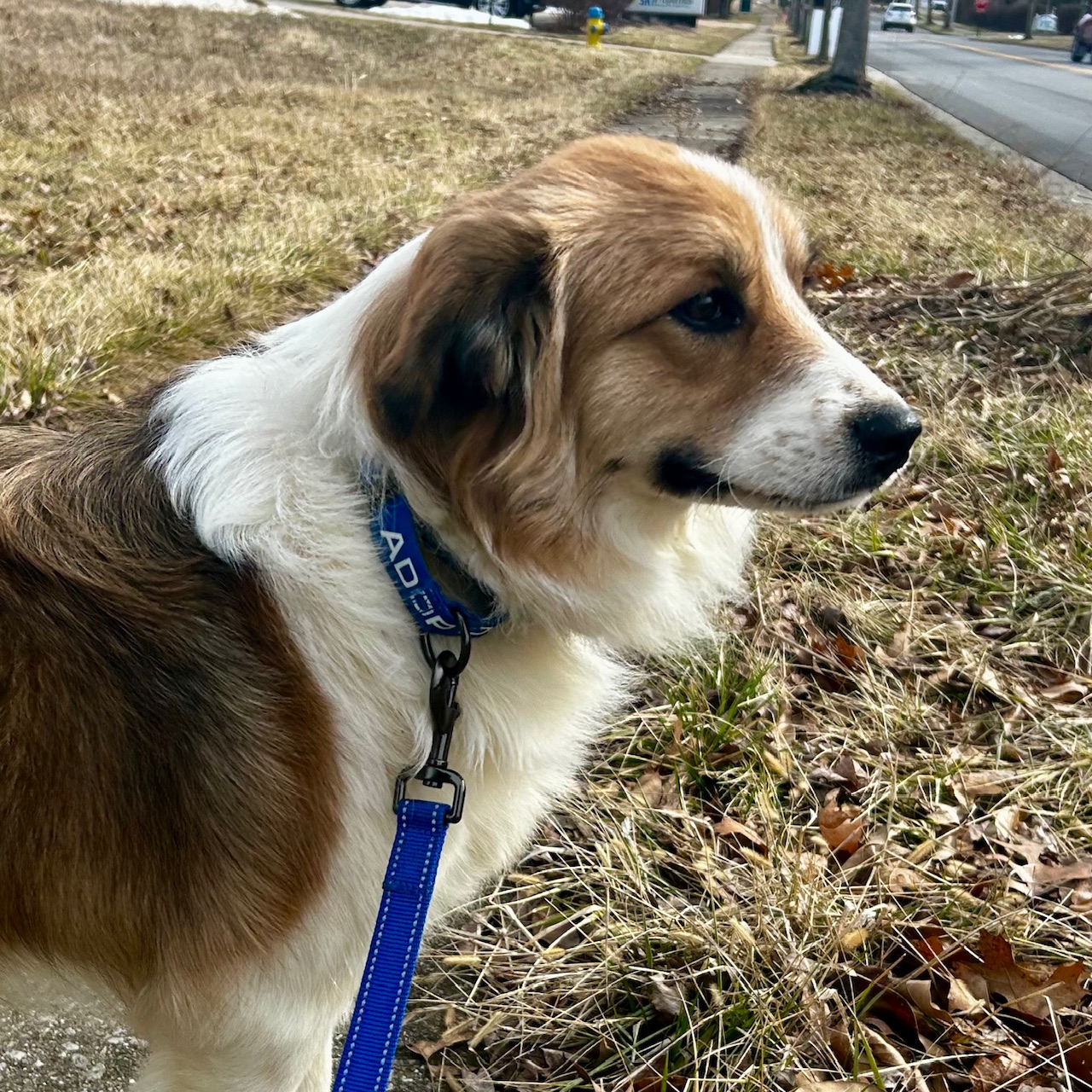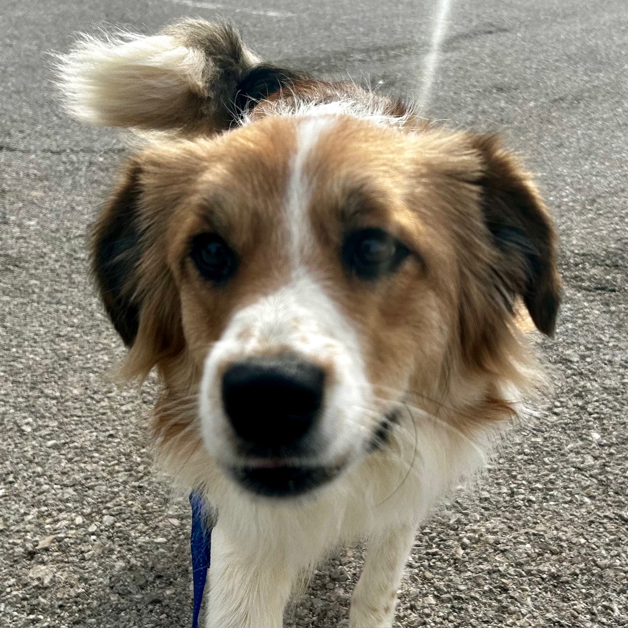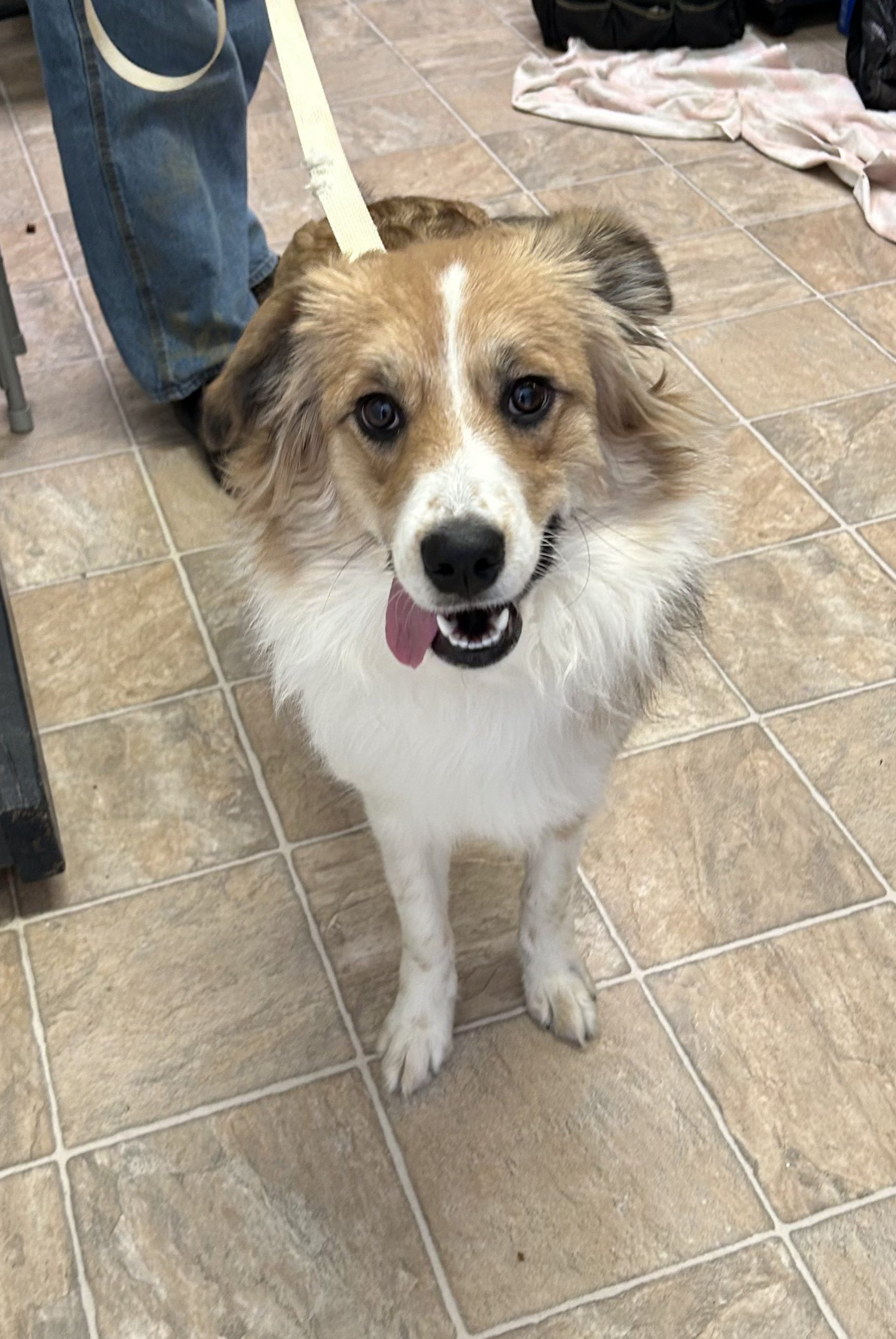 Ella is a sweet dog that loves people, but has not been dog socialized. She is around a year old. She weighs around 35 pounds. She looks like a Collie mix, but may be part Australian Shepherd.
