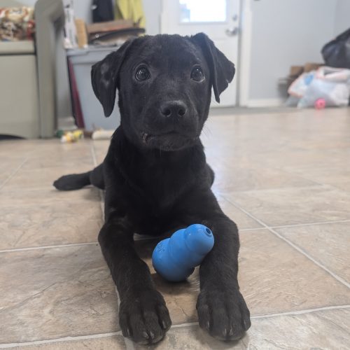 Emma is so young, she still smells like a puppy! She is a two month old lab mix.