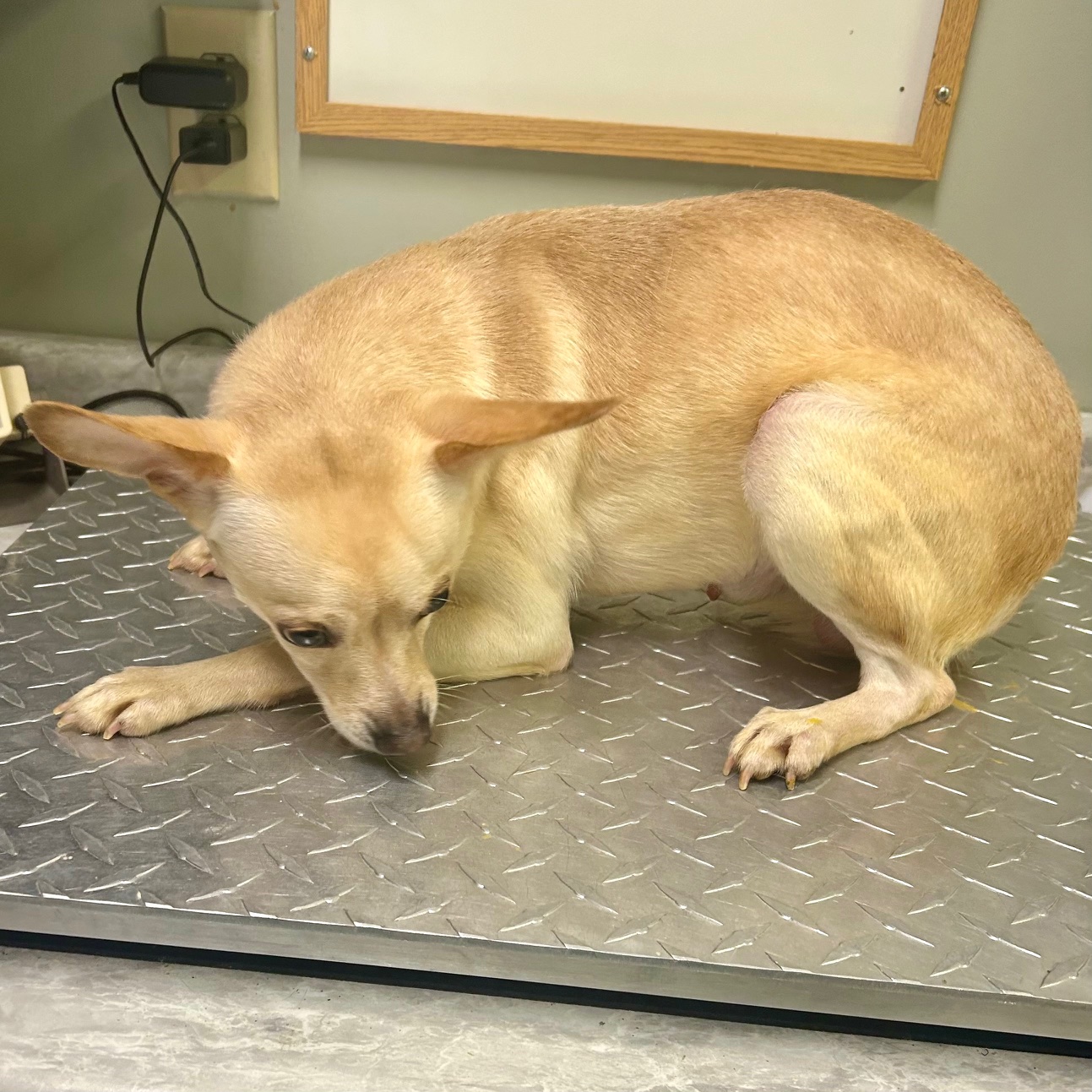 Goliath is a one year old male Chihuahua that weighs around 15 pounds. He is scared, but will warm up quickly.