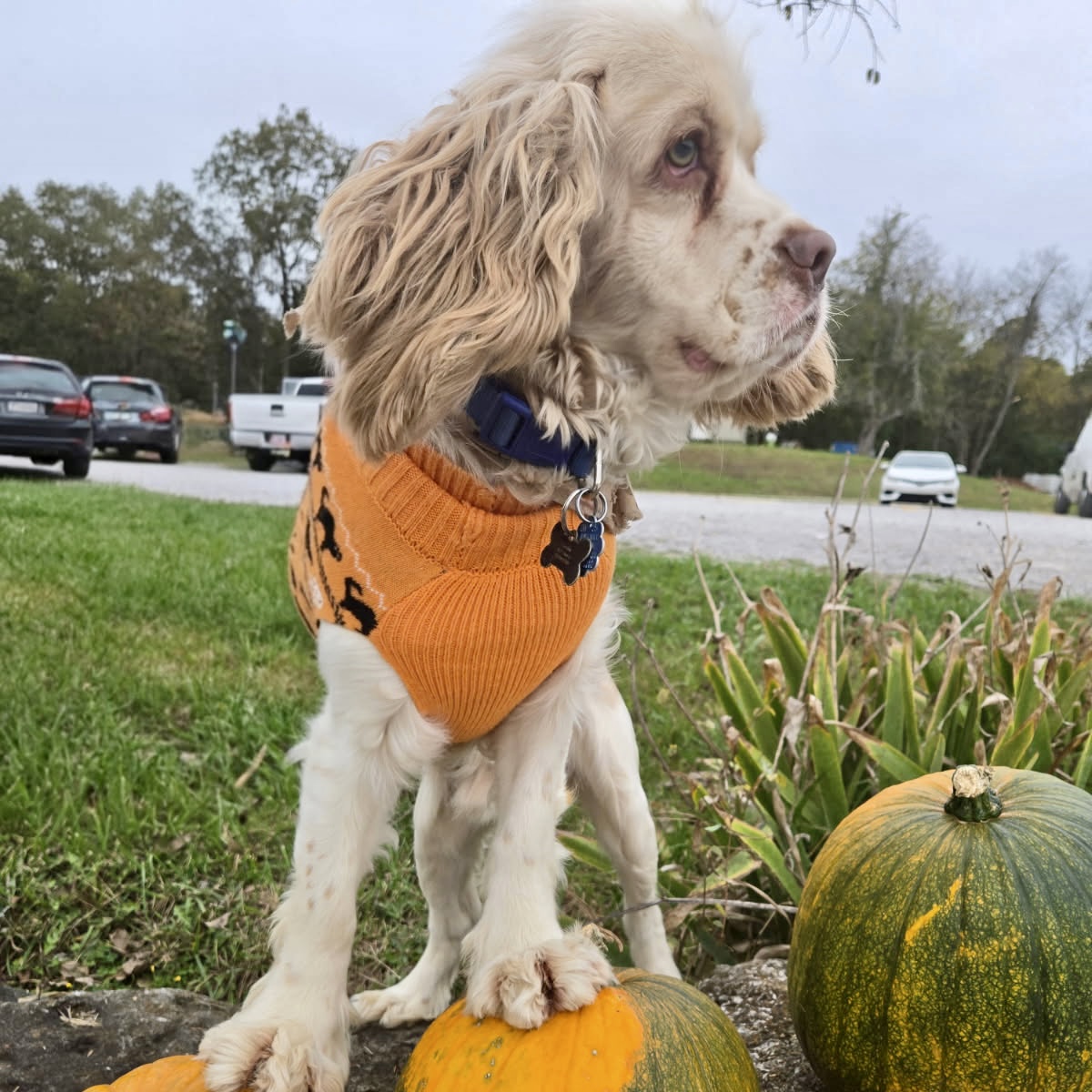 Gus is a ten month old tan and white male Cocker Spaniel that weighs around 35 pounds. This smart fella is crate trained and potty trained. Gus is very high energy. He is still a baby, but he is full steam ahead with other dogs. He loves all dogs but he does not understand boundaries or testing the waters before entering another dog’s personal space. Some dogs are ok with this, but some do not approve and have a less than great reaction. Gus likes people and kids but not little kids. He does not like them in his face or trying to take his toys (I mean who would, right?). So yes, this little man needs additional training and more positive life experiences to teach him the ways of being a good boy. He’s just young, packed with energy, and wanting to face life full force!