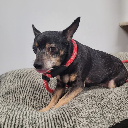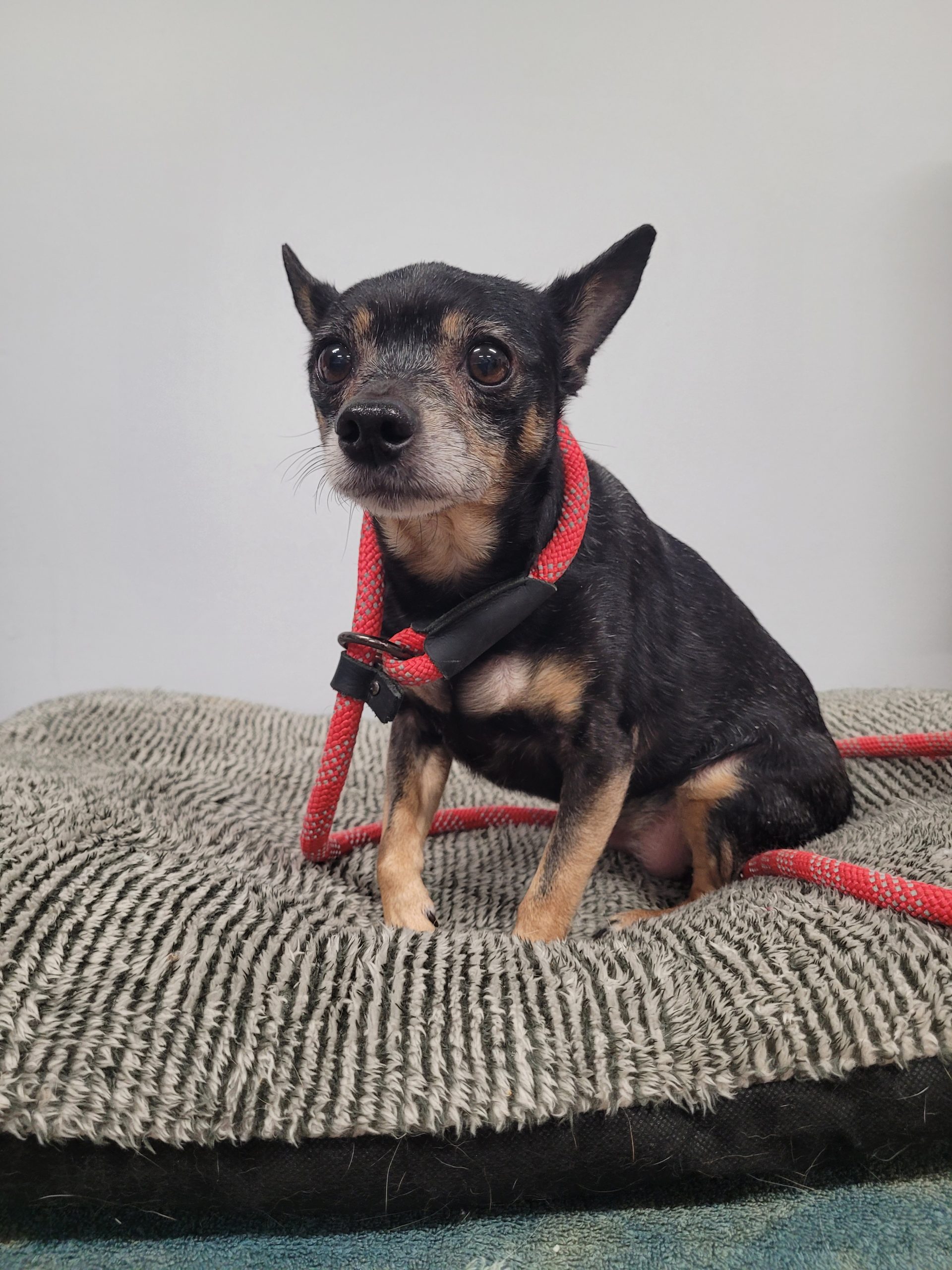 Make me high maintenance! Hazel is an eight year old tri-color Chihuahua mix who weighs around 15 pounds. She is looking for the good life where she can be spoiled and treated like the queen that she is.