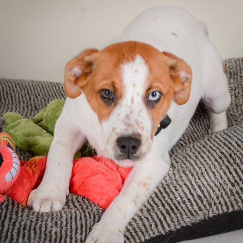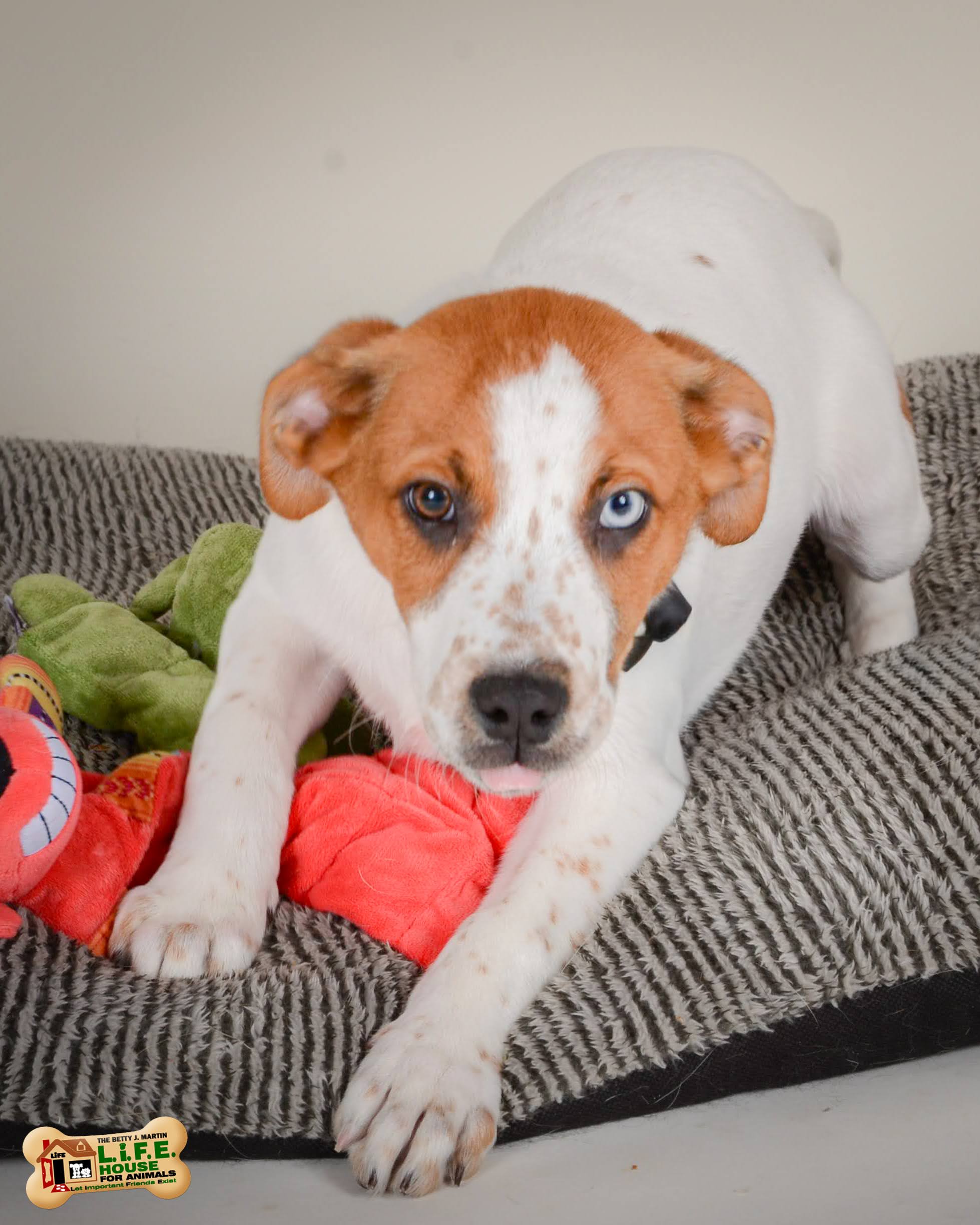This three month old male beagle mix Huey is a total doll! That spotted nose and differing eye color is about the most adorable thing we've seen since...well we aren't sure we've seen such cuteness EVER!
