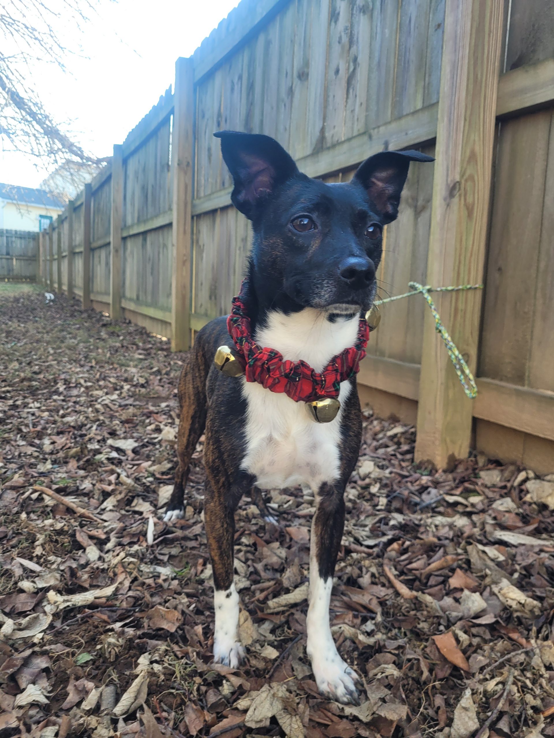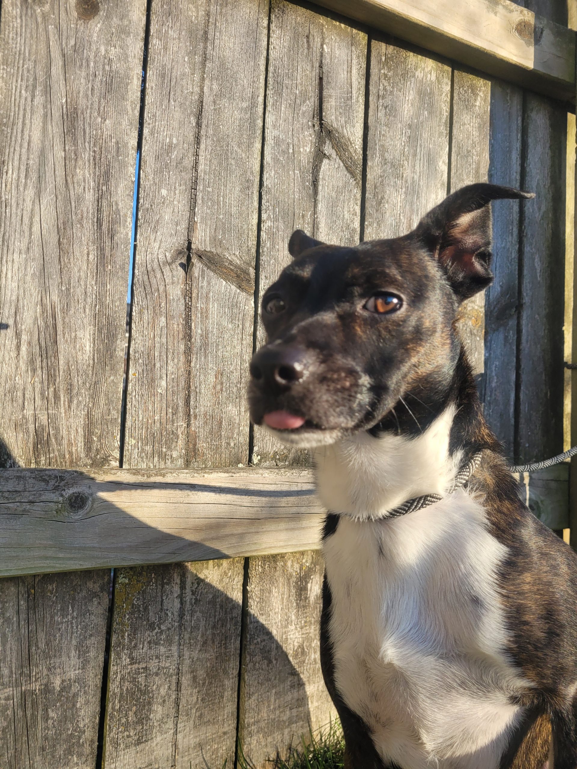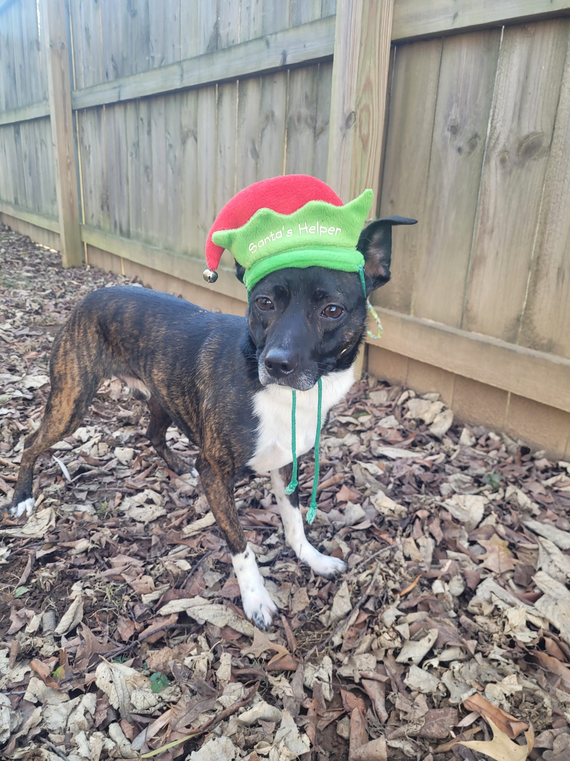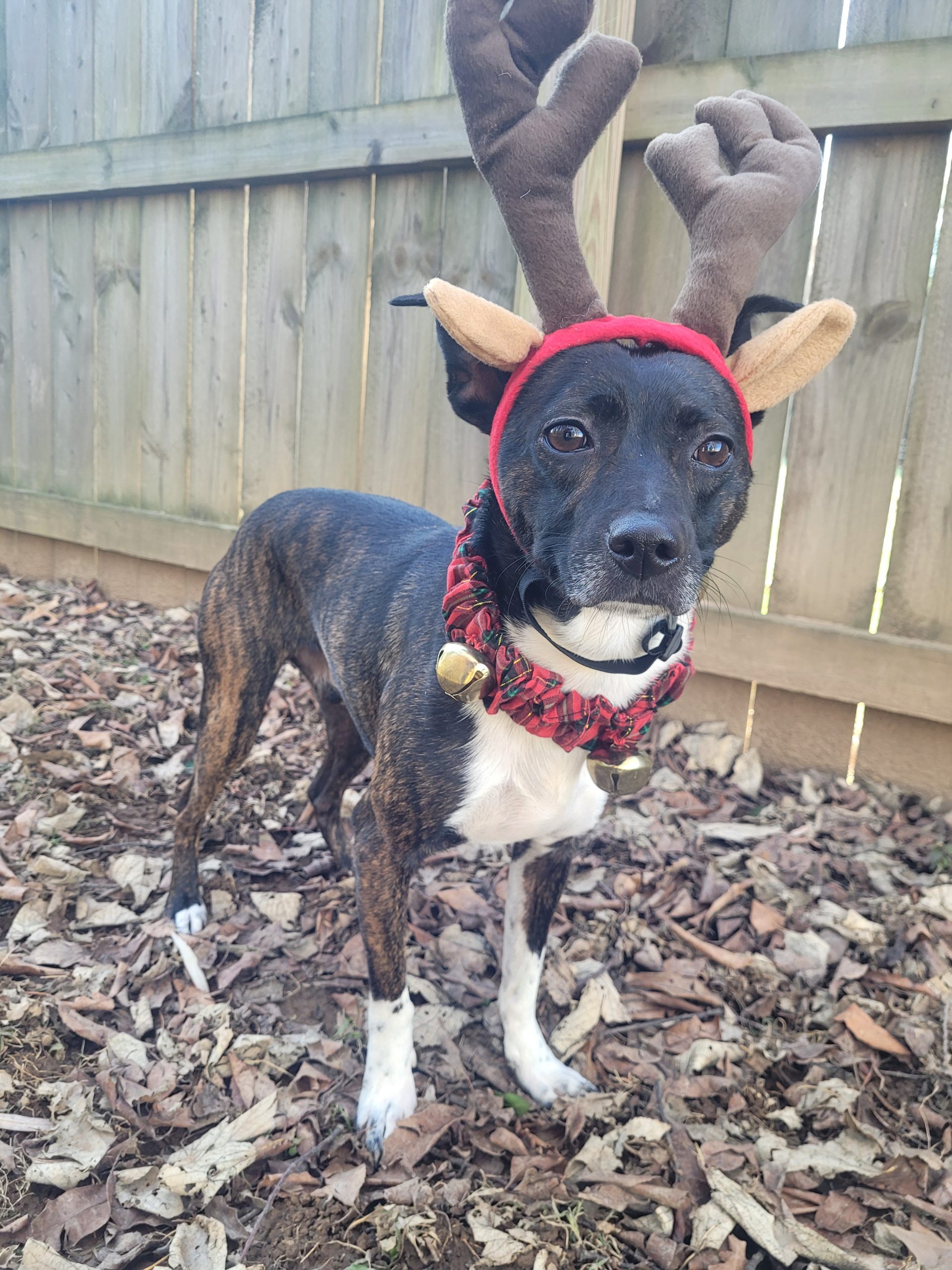 Simba is a four-year-old brindle rat terrier mix. He weighs around 25 pounds. He is coming out of his shell every day! He loves other dogs and is full of energy.