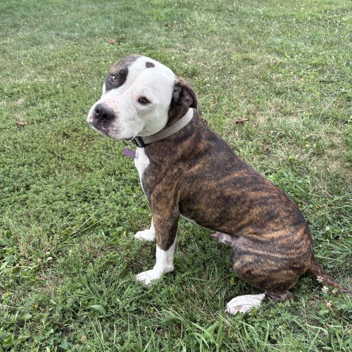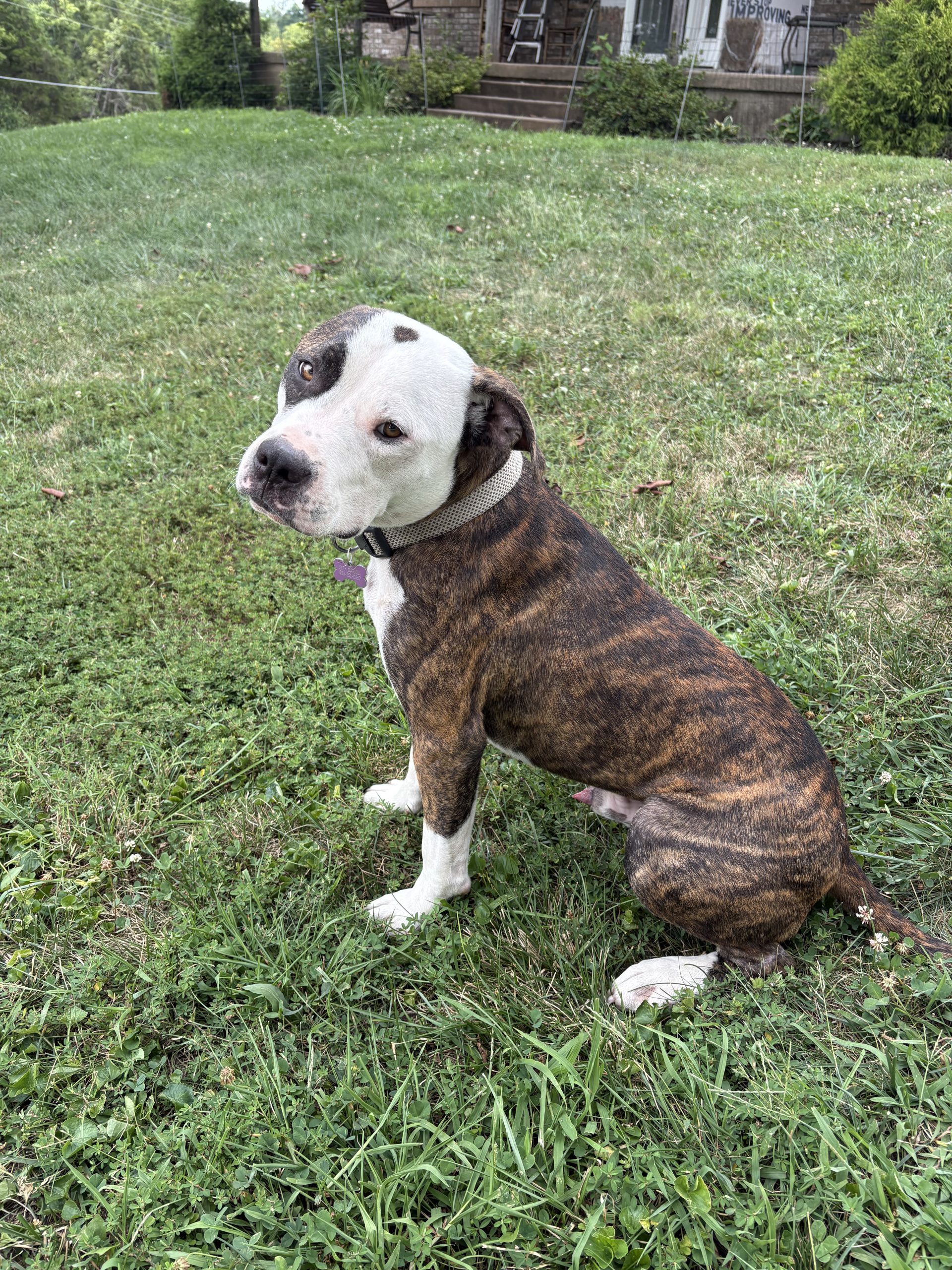 Around a year old. Full of energy. Still a lot of puppy in him. He has been neutered and has all vaccinations. Loves to ride in car and is a good passenger. Friendly to everyone. I believe he is house broke but we have kept him outside. Loves to play with other dogs.