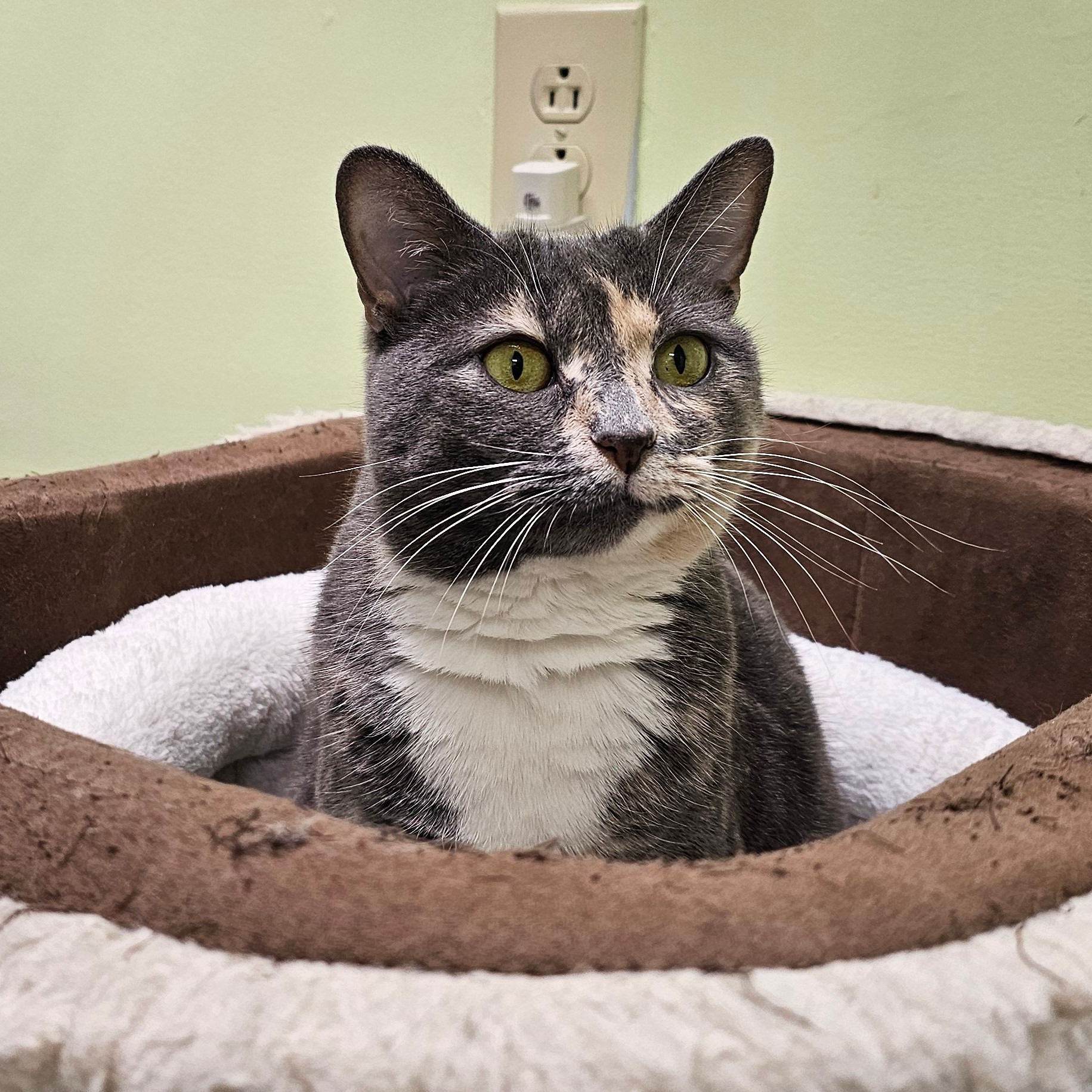 This soft, pretty dilute tortie is Donna. She was born in 2021.