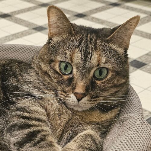 Hazel loves people, but she doesn't have much patience for other cats. She is a little wary of new situations but will adjust if given a little time. Hazel purrs, rubs against your leg, but may give you a growl all at the same time if she sees another cat trying to catch your attention! Hazel is a big cat with gorgeous green eyes and coloring that you would have to see in person to appreciate! She would be good as an only cat or with another cat that is confident and will ignore her. She would probably do okay with a dog that is not cat aggressive.