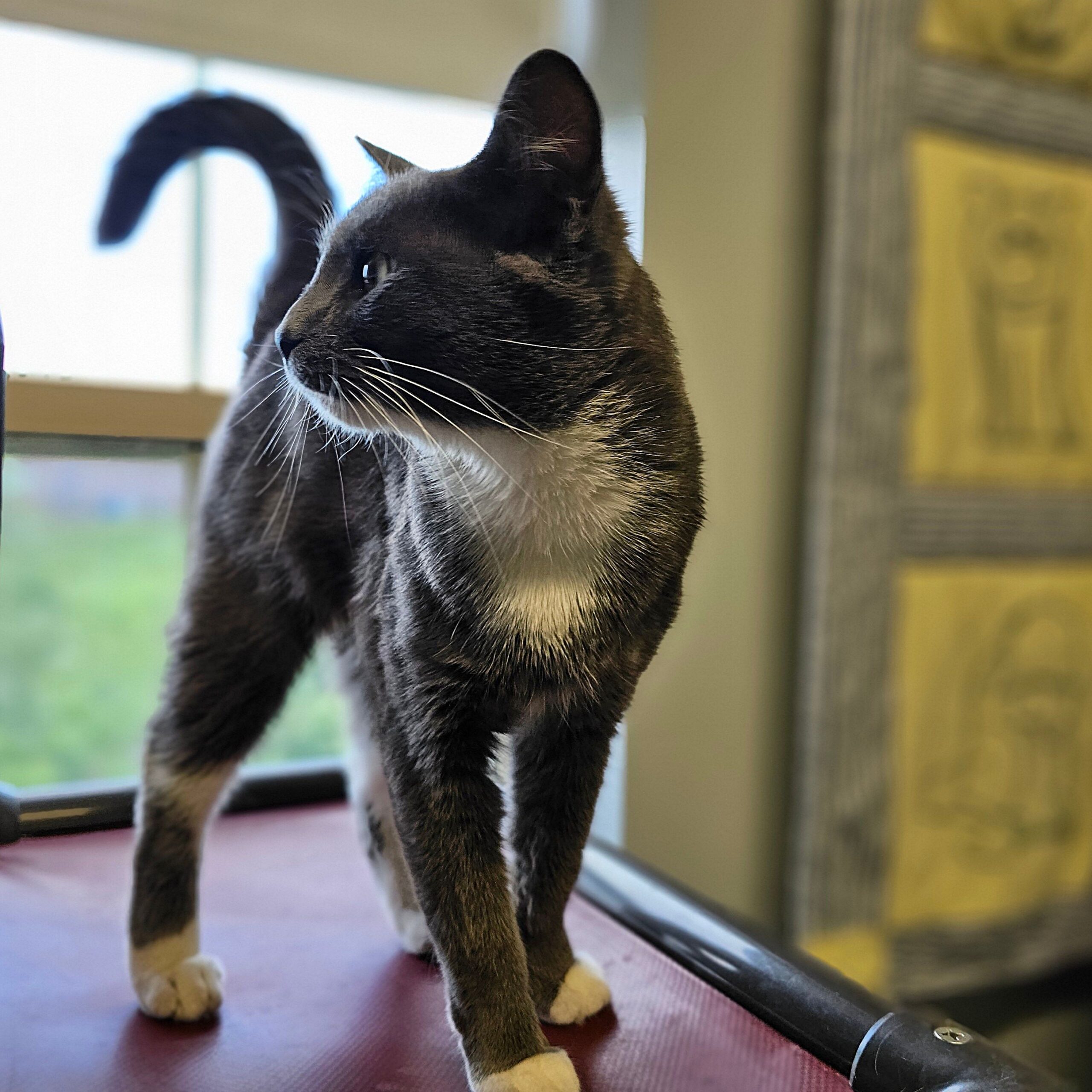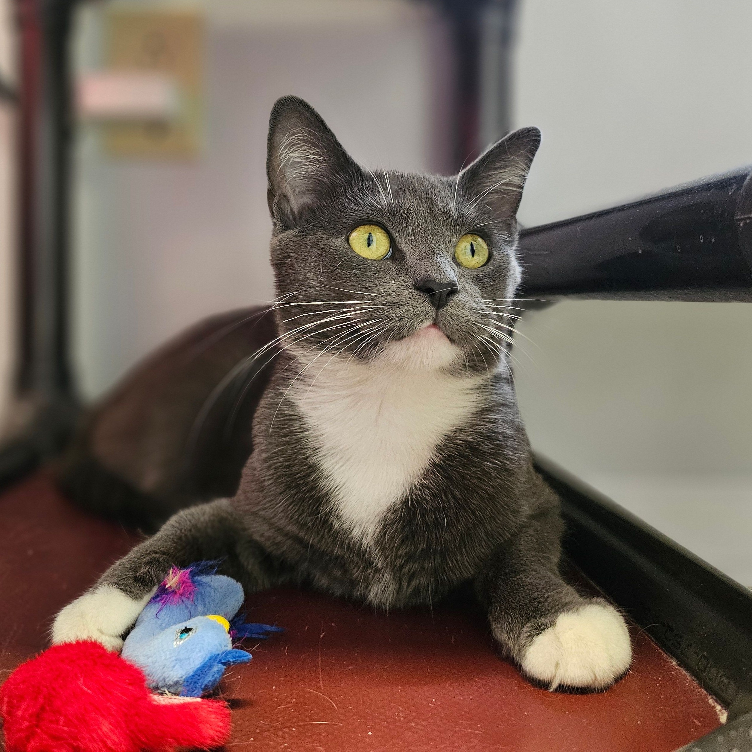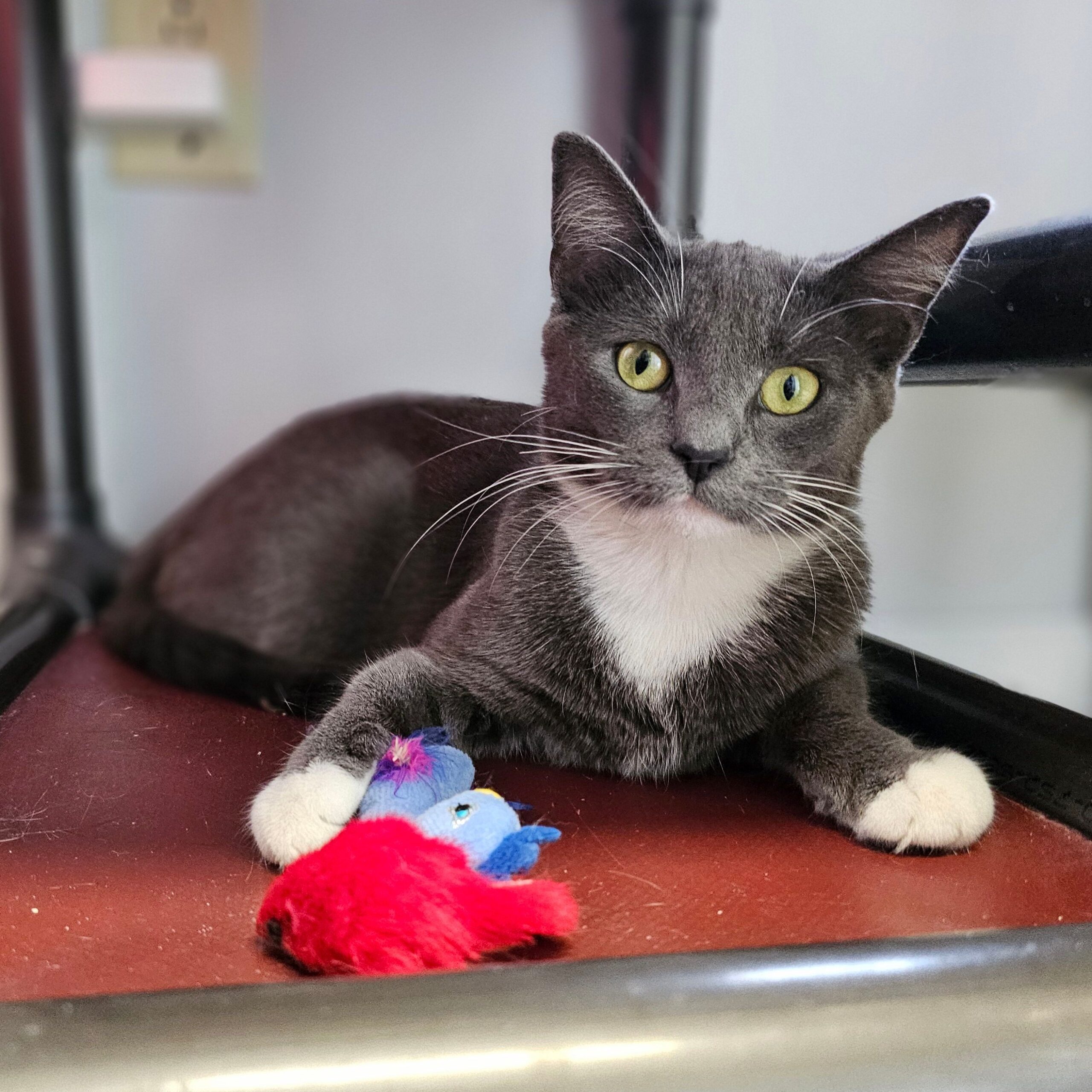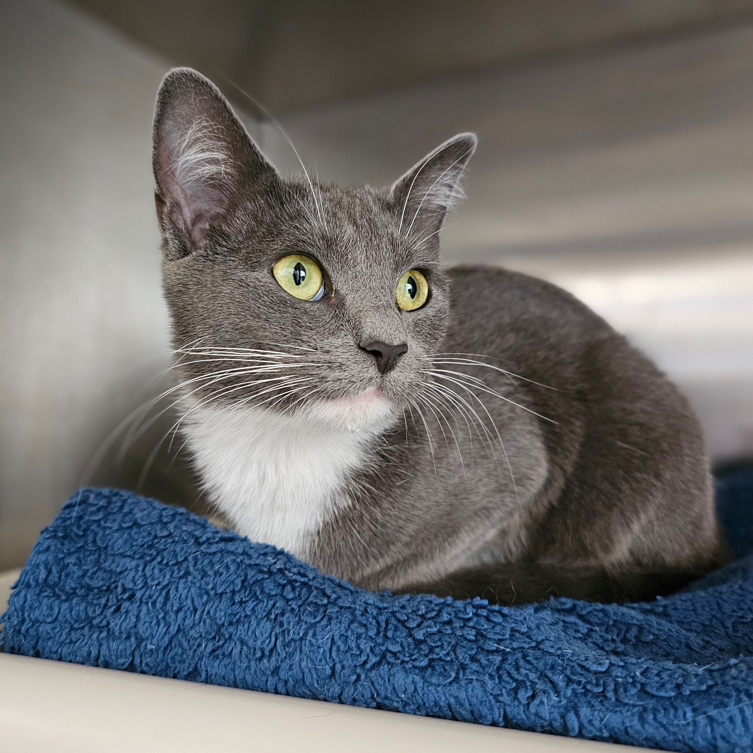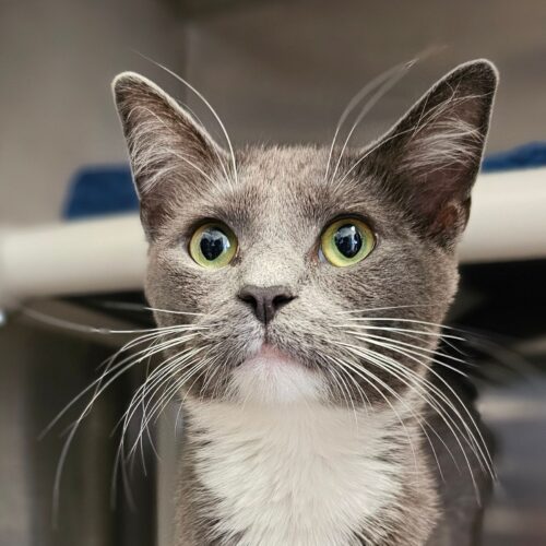 This pretty girl is Lily. She was born in late January or early February of 2025. She was found as a stray. When no on claimed her, she became a LIFE House guest. Lily is curious about everything. She seems to like all people. She is interested in the cats in her cat room, although she hasn't been with them long enough to make friends yet. She is a sweet-natured cat and would make a wonderful companion.