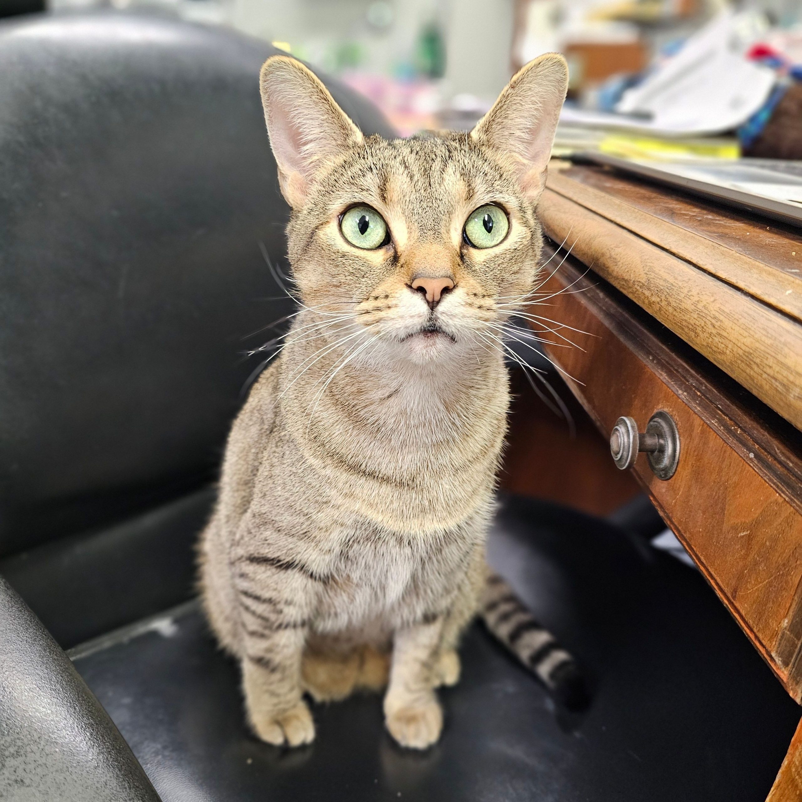 This exotic tabby beauty is Luna Lee. She was born in 2021. Her pale green eyes are her most striking feature. Luna Lee is affectionate and loves people - BUT - not other cats. She can be a bit of a diva, but she is smart and playful and interested in everything. She tolerates dogs. If you are looking for an exotic looking tabby and are interested in being a one cat family, she would be a great companion.