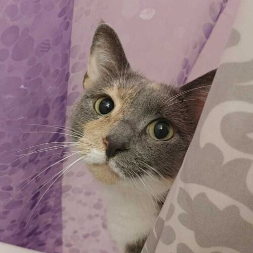 This dilute calico girl is named Stella. She was born in late 2022. According to information her rescuer gathered from neighbors, Stella's owner was an older person who either passed away or had to move to a nursing home. It seems that when the owner left, the cat was turned out of the apartment. The rescuer began feeding Stella and noticed she had a wound on her nose. She sought veterinary care for Stella and explained that she could not keep her because she already had a cat that does not get along with others. While being treated at the vet, Stella tested positive for FIV, an autoimmune disorder that is spread through deep bites. FIV cannot be transmitted to people or dogs. As long as cats do not engage in aggressive fighting behavior, FIV-positive cats can safely live with non-FIV cats in the same household. Stella is very curious and sociable; she enjoys being around people. She is currently in foster care with a LIFE House foster mom.